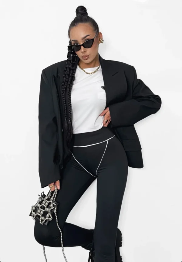 Legginsy Luiz Czarne to idealny wybór na każdą okazję. Spodnie wykonane z wysokiej jakości materiału dobrze dopasowują się do ciała. Legginsy w rozmiarach, posiadają białe przeszycia. Przepięknie się układają i pasują do każdej stylizacji. Polski Produkt Premium.