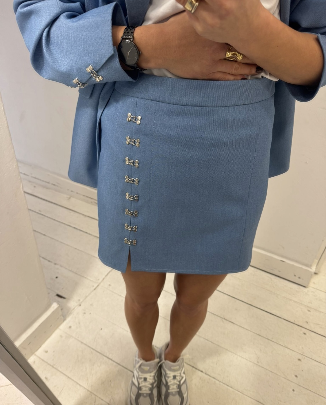 Spódnica Jeansowa Sprzączki to idealny wybór na każdą okazję. Spódnica o dopasowanym kroju z ozdobnymi sprzączkami z przodu. Dopracowane detale sprawiają, że spódnica jest wyjątkowa. Materiał jest lekki i cudownie pracuje. W komplecie z Marynarką Jeansową Sprzączki tworzy spójną całość. Sprawdzi się idealnie do każdej stylizacji. Polski Produkt Premium.