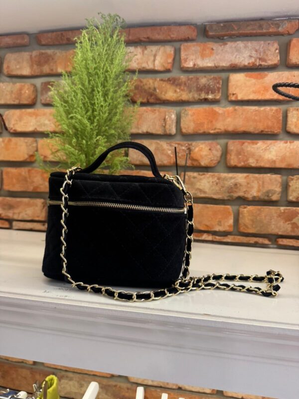Torba Skóra Naturalna Zamszowa z wysokiej jakości materiału o modnym fasonie, posiada dołączony długi pasek, który możemy dopiąć. Posiada suwak, a w środku kieszonkę oraz sporo miejsca. Wszystkie elementy jak suwak, czy klamry są w kolorze złota. Torba szyta w Polsce z miłością i pasją.
